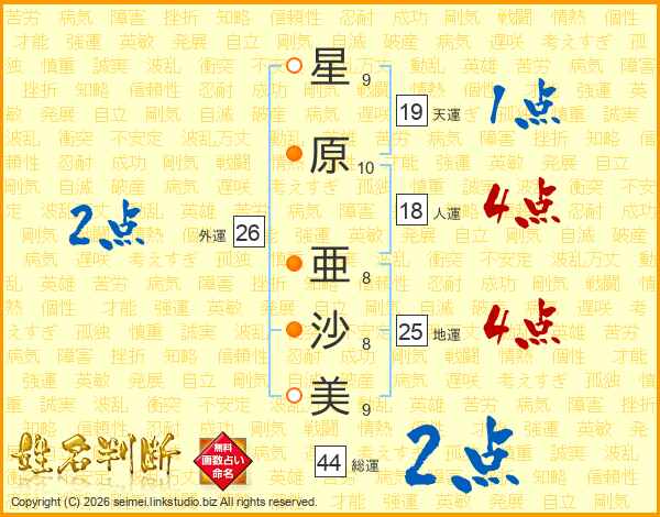 星原亜沙美さんの総運は44画の2点!