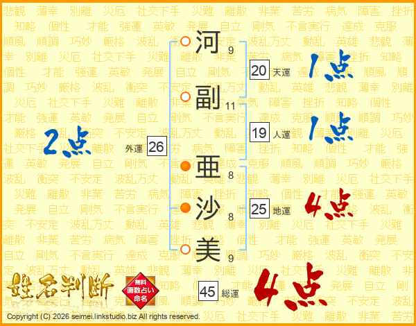 河副亜沙美さんの地運は25画の4点!