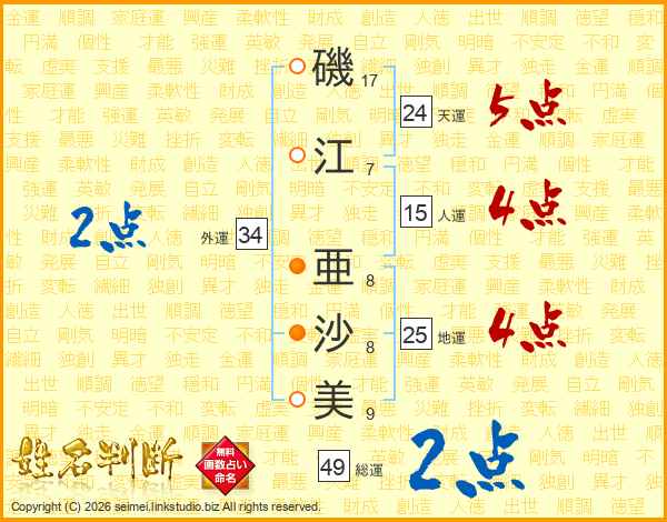 磯江亜沙美さんの地運は25画の4点!
