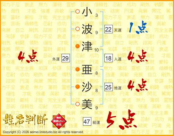 小波津亜沙美さんの総運は47画の5点!