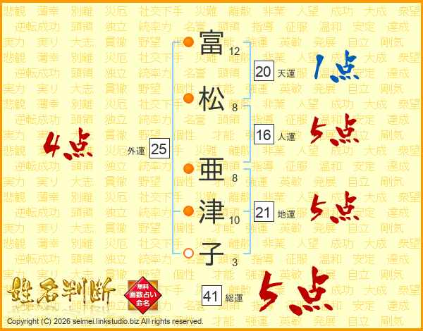 富松亜津子さんの総運は41画の5点!