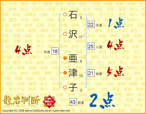 石沢亜津子さんの総運は43画の2点!