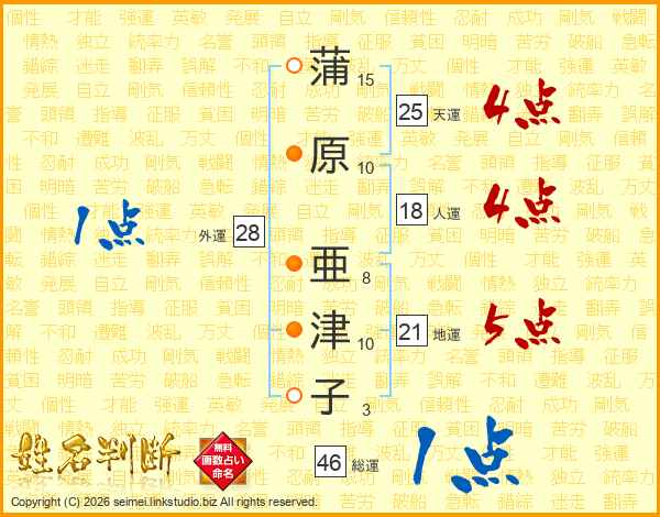 蒲原亜津子さんの総運は46画の1点!
