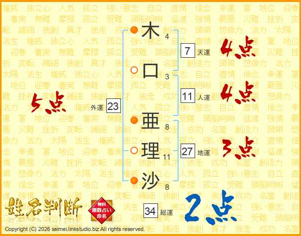 木口亜理沙さんの総運は34画の2点!