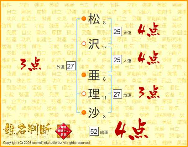 松沢亜理沙さんの総運は52画の4点!