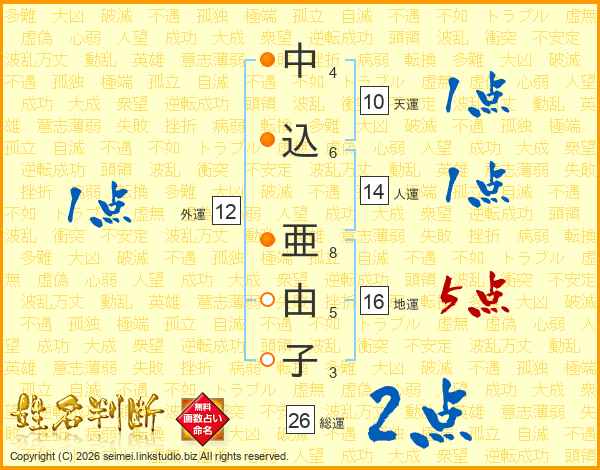 中込亜由子さんの総運は26画の2点!