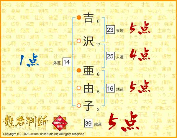 吉沢亜由子さんの外運は14画の1点!