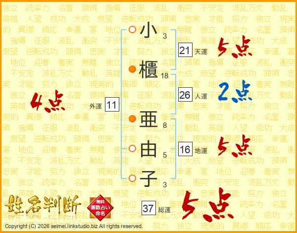 小(3画)櫃(18画) 亜(8画)由(5画)子(3画)