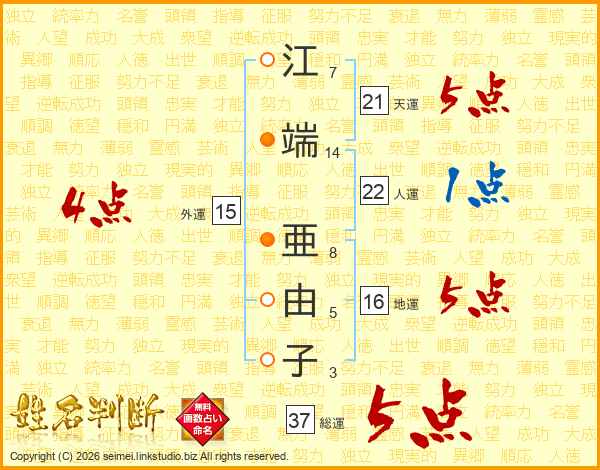 江端亜由子さんの総運は37画の5点!
