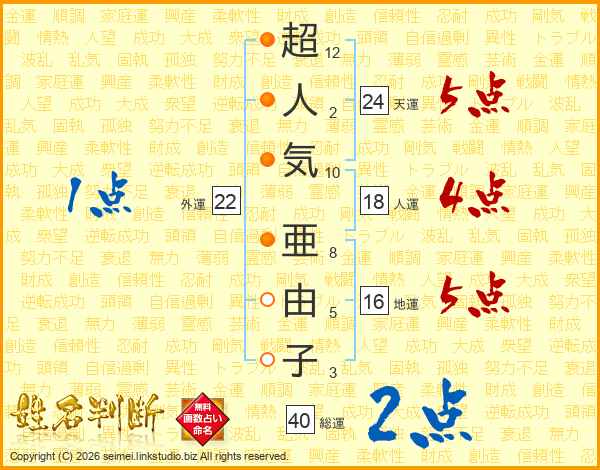 超人気亜由子さんの天運は24画の5点!
