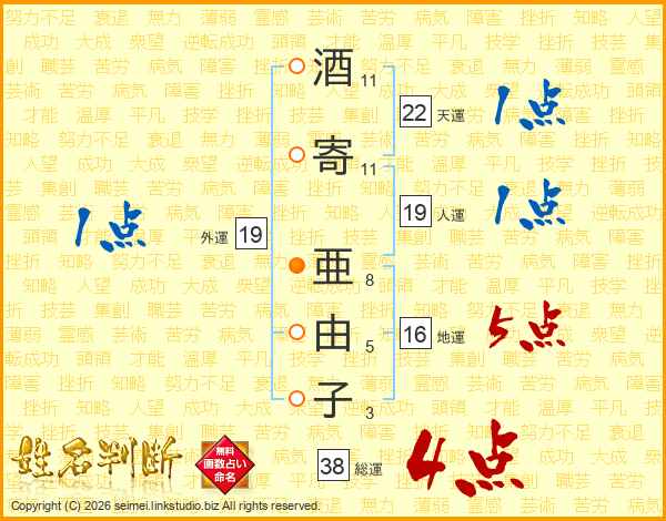 酒寄亜由子さんの総運は38画の4点!
