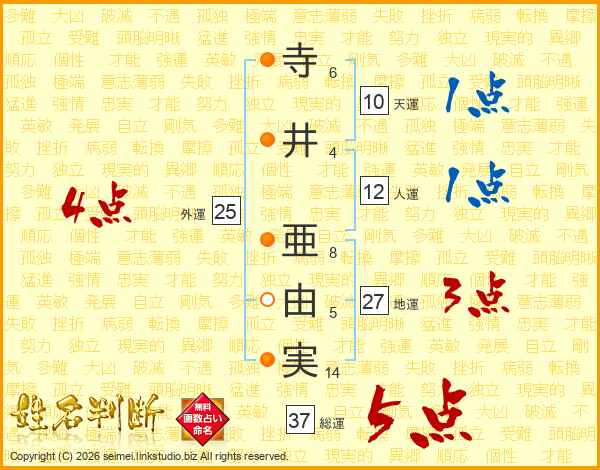 寺井亜由実さんの総運は37画の5点!