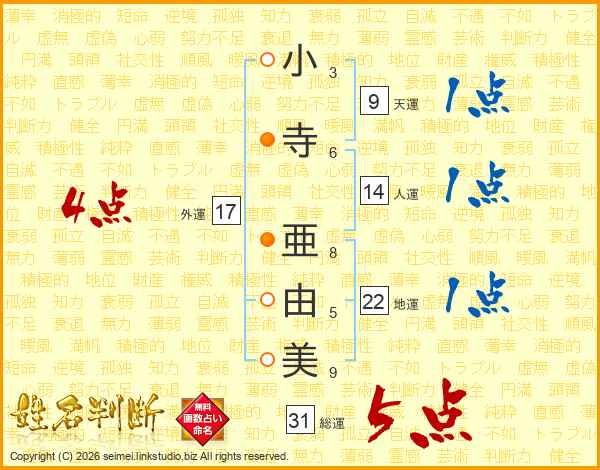 小寺亜由美さんの総運は31画の5点!