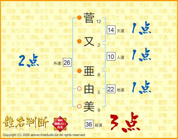 菅又亜由美さんの外運は26画の2点!