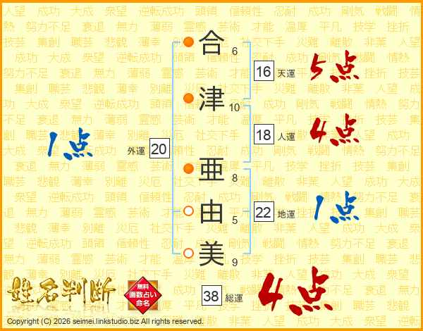 合津亜由美さんの総運は38画の4点!