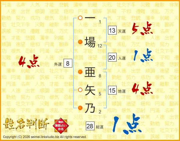 一場亜矢乃さんの総運は28画の1点!