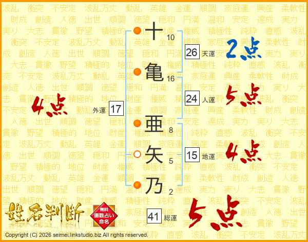 十亀亜矢乃さんの総運は41画の5点!