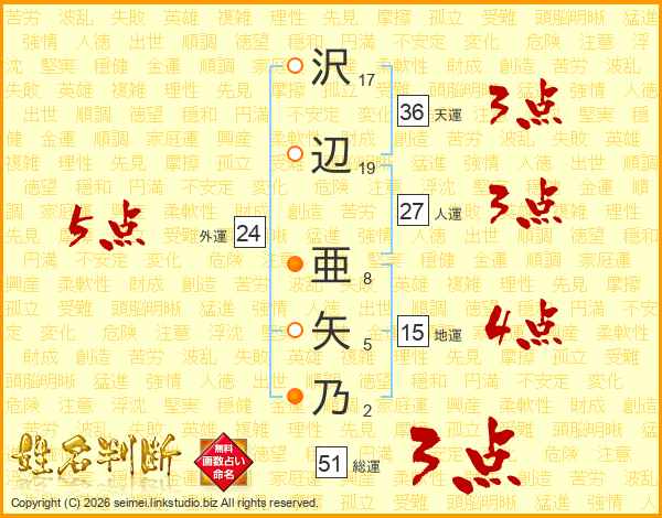 沢(17画)辺(19画) 亜(8画)矢(5画)乃(2画)