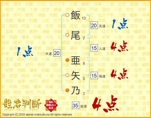 飯尾亜矢乃さんの総運は35画の4点!