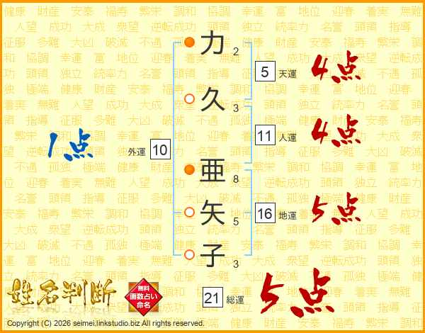 力久亜矢子さんの総運は21画の5点!