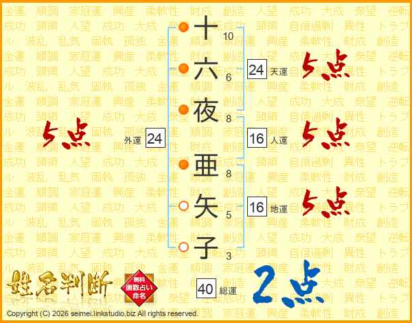 十六夜亜矢子さんの総運は40画の2点!