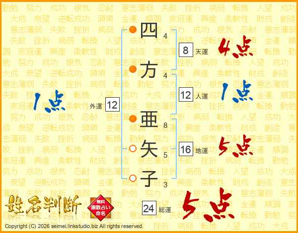 四(4画)方(4画) 亜(8画)矢(5画)子(3画)