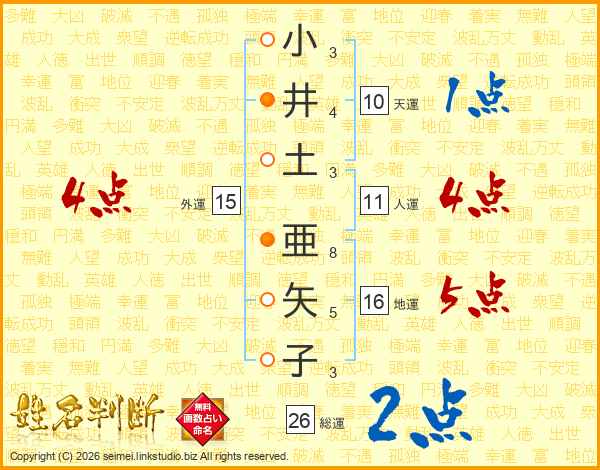 小井土亜矢子さんの総運は26画の2点!