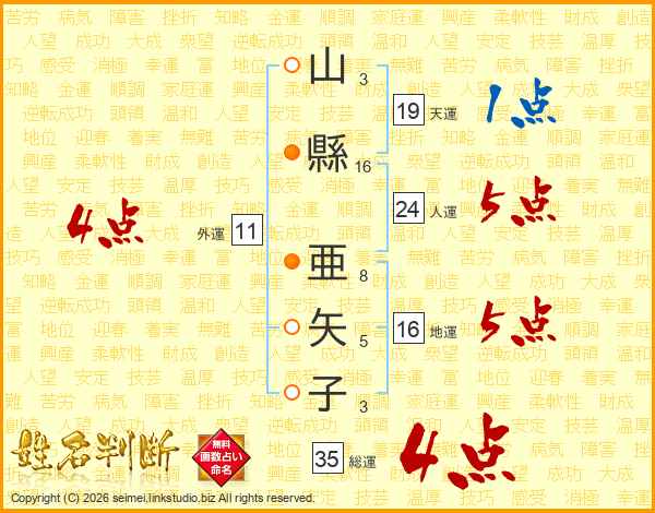 山縣亜矢子さんの総運は35画の4点!