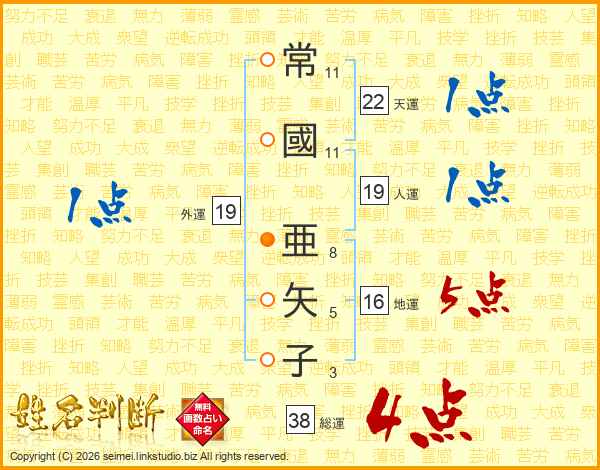 常國亜矢子さんの総運は38画の4点!
