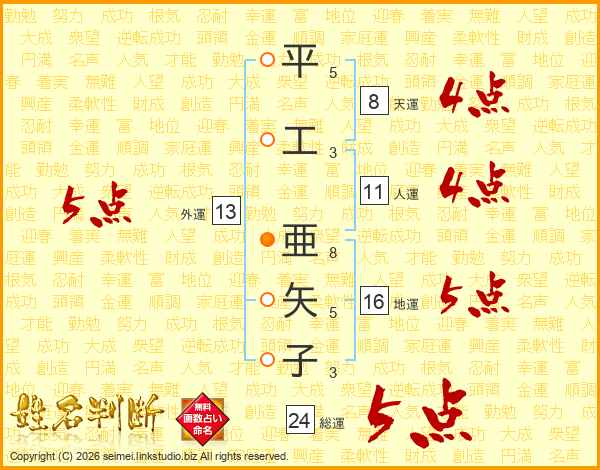 平工亜矢子さんの外運は13画の5点!