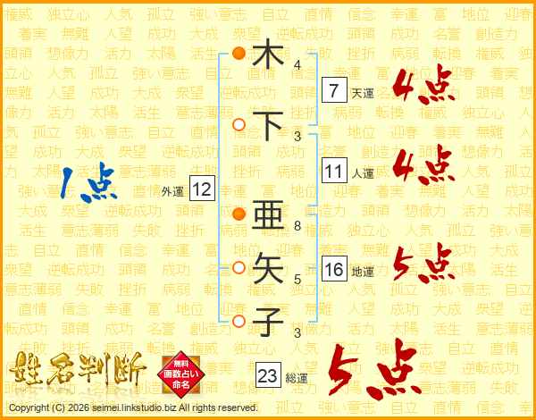 木下亜矢子さんの天運は7画の4点!