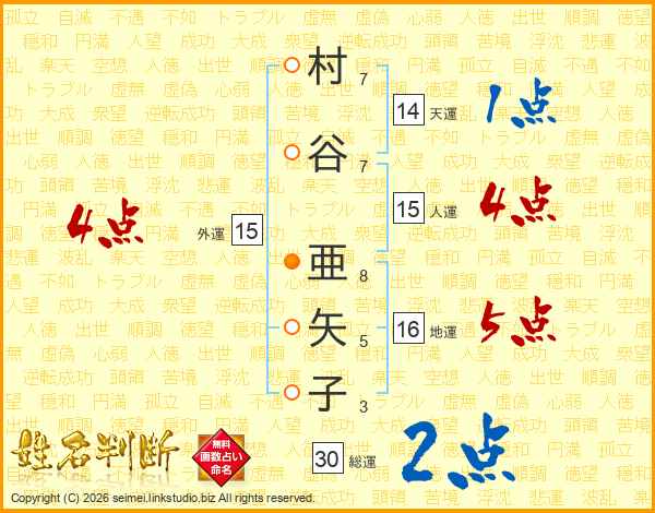 村谷亜矢子さんの総運は30画の2点!