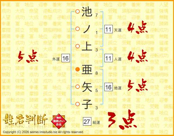 池ノ上亜矢子さんの天運は11画の4点!