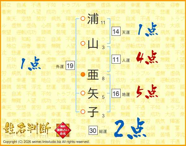 浦山亜矢子さんの総運は30画の2点!
