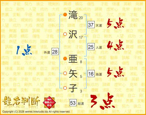 滝沢亜矢子さんの総運は53画の3点!