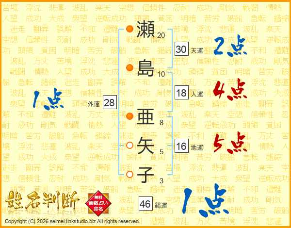 瀬島亜矢子さんの総運は46画の1点!