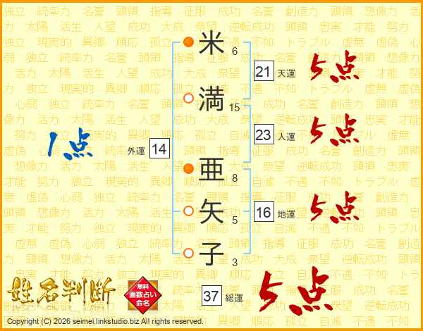 米満亜矢子さんの総運は37画の5点!