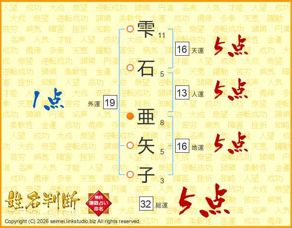 雫(11画)石(5画) 亜(8画)矢(5画)子(3画)
