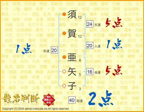 須賀亜矢子さんの総運は40画の2点!