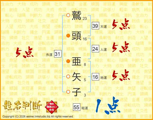 鷲頭亜矢子さんの天運は39画の5点!