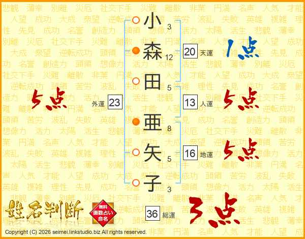 小森田亜矢子さんの総運は36画の3点!
