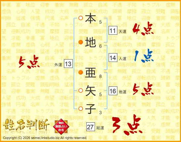 本地亜矢子さんの総運は27画の3点!