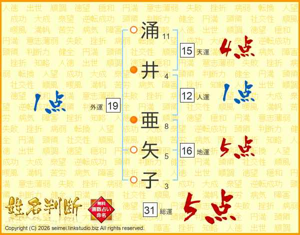 涌井亜矢子さんの総運は31画の5点!