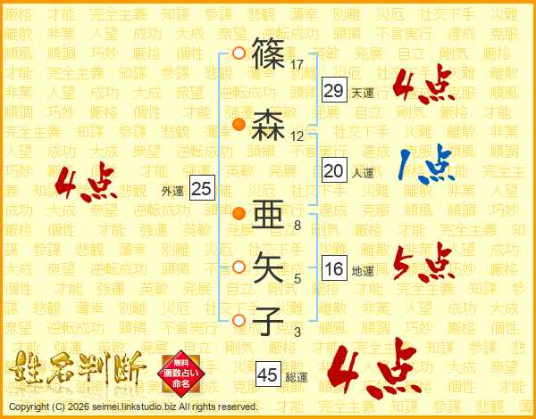 篠森亜矢子さんの天運は29画の4点!
