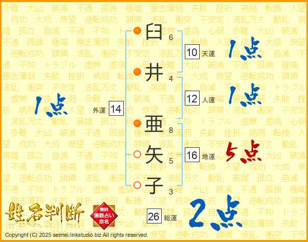 臼(6画)井(4画) 亜(8画)矢(5画)子(3画)