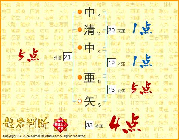 中清中亜矢さんの総運は33画の4点!