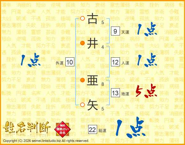 古(5画)井(4画) 亜(8画)矢(5画)