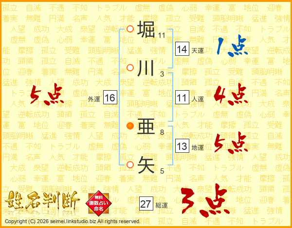 堀(11画)川(3画) 亜(8画)矢(5画)