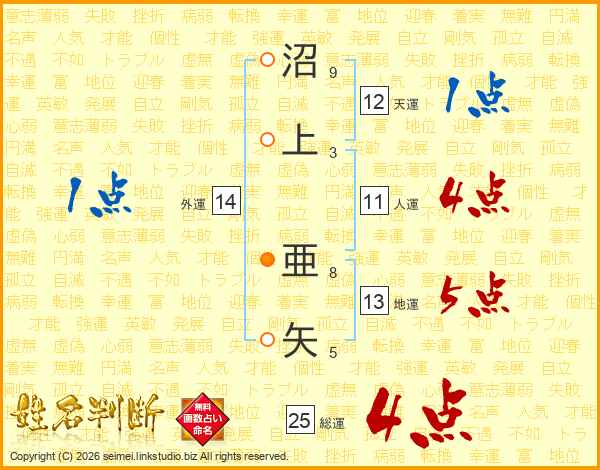 沼上亜矢さんの外運は14画の1点!
