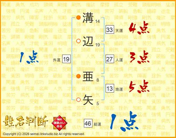 溝辺亜矢さんの総運は46画の1点!
